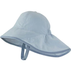 A full-brimmed, safari-style hat with a drape in back for neck coverage. When the wind starts whipping, the nonchafing, adjustable chin strap keeps the hat secure. It’s made of 100% recycled nylon with a DWR (durable water repellent) finish and 40+ UPF sun protection. Fair Trade Certified™ sewn.